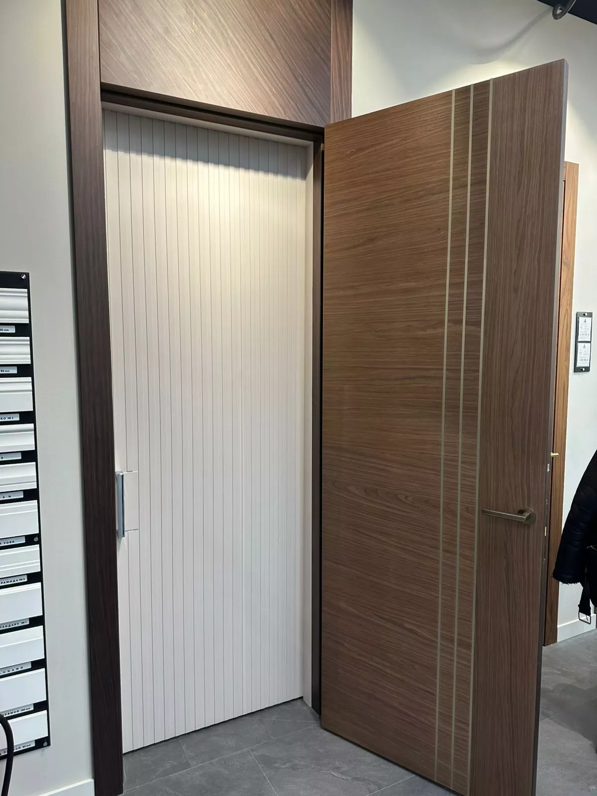 Современная коллекция дверей Piana облицована натуральным шпоном. Сейчас мы используем две совершенно разные фактуры. Шпон натурального ореха выглядит по- новому в современном дизайне дверей за счёт радиальной структуры. Традиционный дуб в необычных тонировках также выглядит свежо и актуально.
