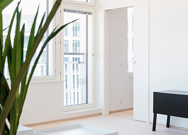Эта система позволяет сдвигать одно полотно в пенал, и подходит для монтажа в любых помещениях. Идеальна для установки не только в ванных комнах, кладовках, гардеробных, но также в небольших проходных, так как оптимизирует пространство даже при ограниченных площадях.