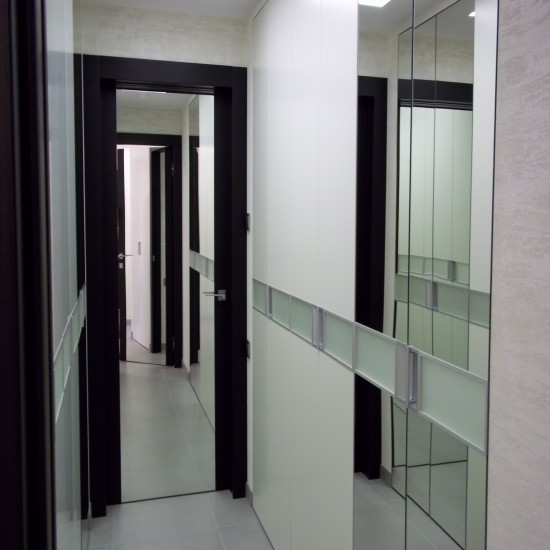 - заменять стационарные напольные или настенные зеркала, тем самым освобождая место для другой мебели или элементов декора. Поверхности без дополнительной художественной обработки можно успешно использовать по основному назначению в гардеробных, прихожих, ванных комнатах;